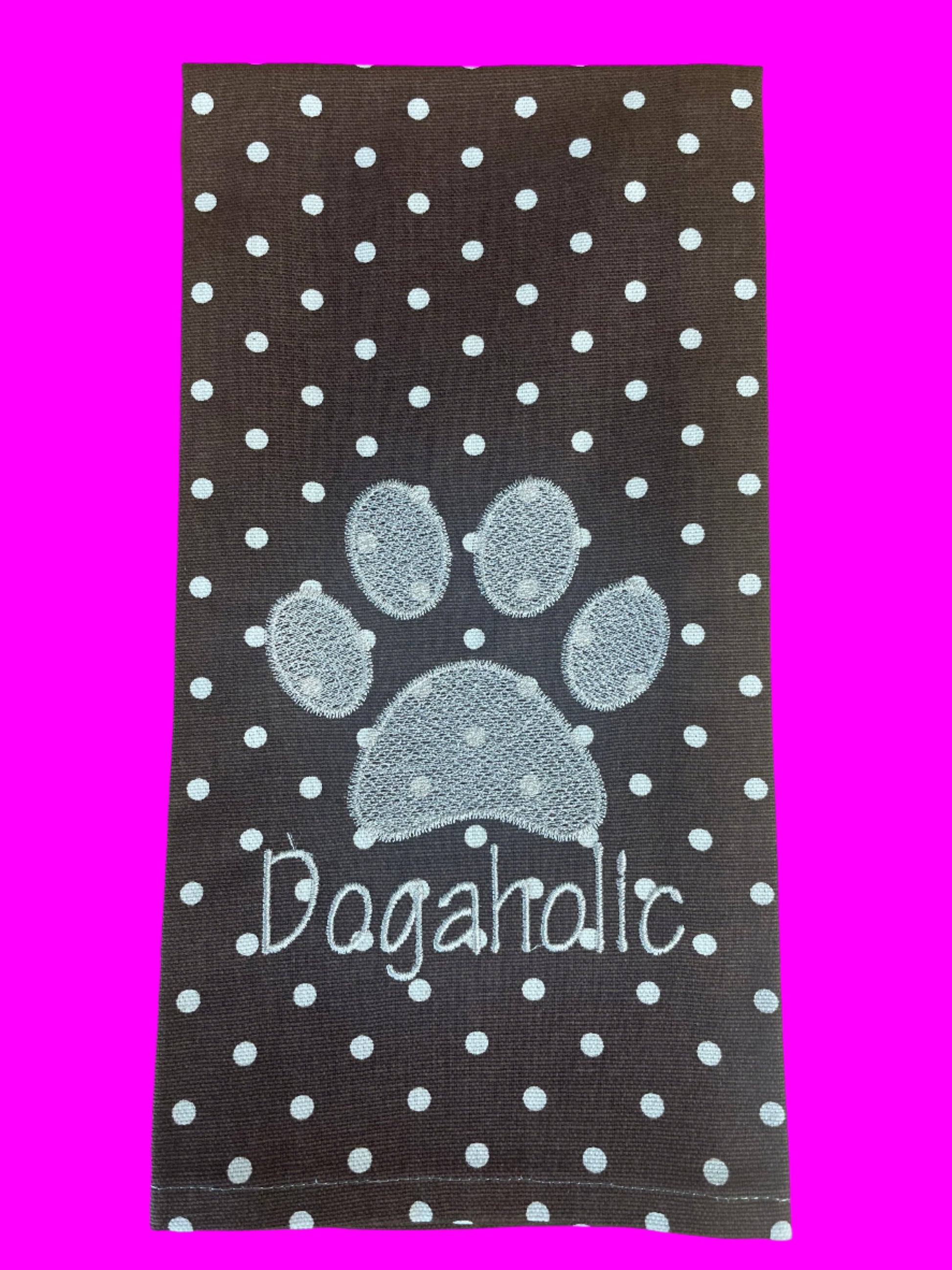 Celebrate your love for all things canine with our Dogaholic handmade decorative towel! Perfect for dog moms, dog dads, and anyone who proudly wears the title Dogaholic, this decorative towel adds a playful, paw-some touch to your kitchen, guest bath, or laundry room.